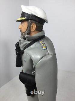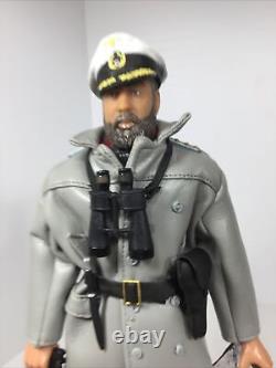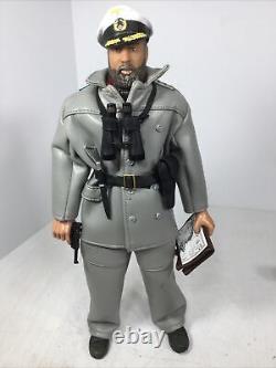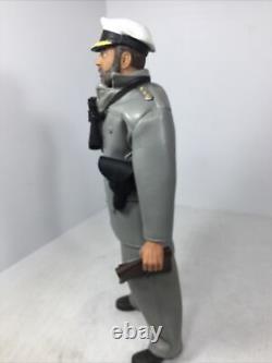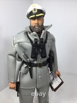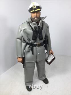 1/6 21ST CENTURY GERMAN WW2 NAVY KRIEGSMARINE U BOAT CAPTAIN WITH FULL UNIFORM UNDER HIS "MOUSE GREY" WEATHER PROOF COAT AND MATCHING OVER TROUSERS CIVILIAN SCARF CAPTAINS CRUSHER CAP BELT KRIEGSMARINE KNIFE WITH SCABBARD LUGER PISTOL WITH HOLSTER MAP CASE AND DETAILED ACTUAL KRIEGSMARINE NAVIGATION CHART ETC.