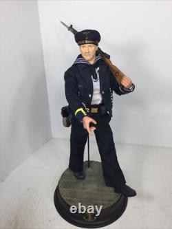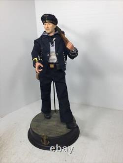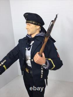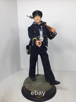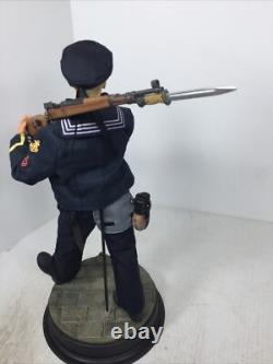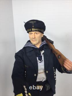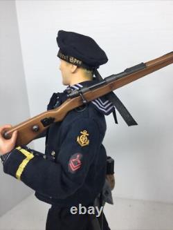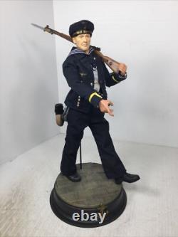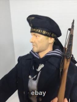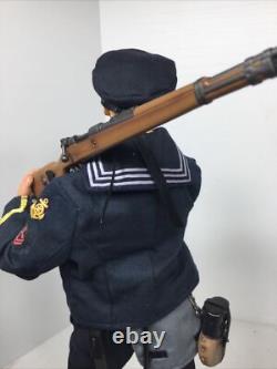 1/6 DRAGON WW2 GERMAN NAVY KRIEGSMARINE PETTY OFFICER 2ND CLASS POCKET BATTLESHIP "GRAF SPEE" IN PARADE UNIFORM! HE COMES WITH A COBBLESTONE STREET DISPLAY STAND WITH KRIEGSMARINE METAL EMBLEM HE COMES WITH FULL KRIEGSMARINE DRESS UNIFORM WITH RANK AND JOB PATCH SILVER WOUND BADGE AND SPANISH CROSS BADGE AND BREAST EAGLE KRIEGSMARINE CAP WITH GRAFF SPEE TALLY RIBBONS AND NATIONAL CAP BADGE BELL BOTTOM TROUSERS SHORT BOOTS BELT WITH METAL KRIEGSMARINE BUCKLE BAYONET SCABBARD BREAD BAG CANTEEN TWIN 3 CELL CARTRIDGE POUCHES WORKING BOLT MAUSER K-98 RIFLE WITH SLING AND REMOVABLE BAYONET A DETAILED WRISTWATCH ETC, ETC.