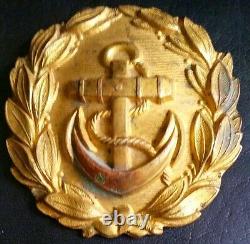 On December 15TH 1921 the Weimar era Reichsmarine introduced a new brocade belt and buckle which followed the basic design of the Imperial brocade belt and dress buckle but eliminated the crown and "W" monogram. The reorganized Kriegsmarine retained the Reichsmarine brocade belt and dress buckle for Line Officer's. Originally the buckles were only produced with a gilt finish until 1934 when a silver version for Administrative Officials with the equivalent of Officers ranks was introduced. The Officer's/Administrative Officials' belt buckle came in two sizes with a roughly, 57mm, (2 1/4"), diameter buckle for wear with the brocade dress belt and a smaller, roughly, 38mm, (1 1/2"), diameter buckle for wear with the black fabric undress belt. The belt comes with a roughly, 57mm diameter, injection molded, gilt washed, aluminum alloy construction buckle which features a high relief, embossed, overlapping, laurel leaf wreath outer edge encompassing an embossed, vertical, fouled anchor, on a slightly domed, horizontally ribbed field.