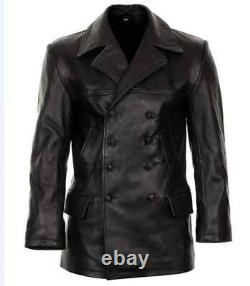 Men's German Black Classic Black WW2 Kriegsmarine Coat Mens Leather Jacket