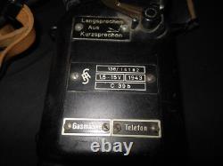The Kriegsmarine Coastal Artillery C39b Headset was used in various field application, so as in Bunkers; Artillery Positions; and Communication Telephones. It also has a fitting that allows the user to attached a cable to a Gas Mask, allowing the user to speak while wearing. Made of aluminum, rubber, steel, and bakelite, this Coast Artillery Communication Headset is in EXCELLENT New Old Stock condition! Though it remains UNUSED, with the rubber cable still tied in the original factory string, there are some marks, scratched, and wear from storage. It is 100% COMPLETE with all data plates, and all straps and fitting are fully adjustable!