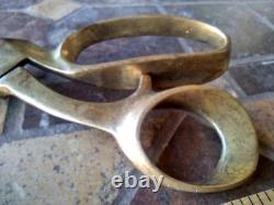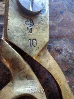 Eickhorn daggers can be pricey, but they're not particularly rare since thousands were produced; however, Eickhorn scissors are quite hard to find. Make me a reasonable offer. The scissor features solid brass handles paired with steel blades, ensuring a perfect balance of strength and precision for cutting through various materials with ease. Proudly made by EICKHORN Solingen this scissor is a testament to quality and enduring design. Its brass assortment adds a touch of classic elegance for and scissor is a practical addition to your collection, embodying the resilience of the iconic brand during the WW2 era. Please look at the pictures for more details. Solid brass handles with steel blades.