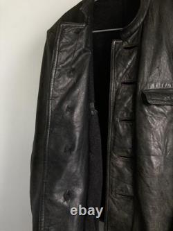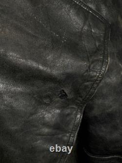 The condition is "Used" with some blemishes and repairs, but overall, remains a highly collectible and wearable piece. Genuine WWII German military U-Boat jacket from the 1940s. Rare and highly collectible original military piece. Unique aged leather with an attractive fade and patina. Carefully repaired to preserve structural integrity and appearance. Offers a distinctive slim but comfortable fit, with a vintage silhouette.Suitable for collectors or fashion enthusiasts seeking military history and style. Please note that all measurements are approximate and taken manually.