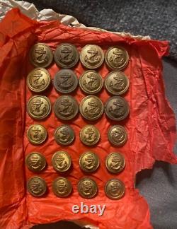 WW2 German Kriegsmarine gold painted twelve 24mm and twelve smaller size glass buttons, on original cardboard sheet & paper. PLEASE CHECK OUT MY OTHER LISTINGS.